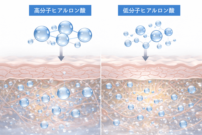 プロファイロは、高分子と低分子の2種類のヒアルロン酸を配合しています。