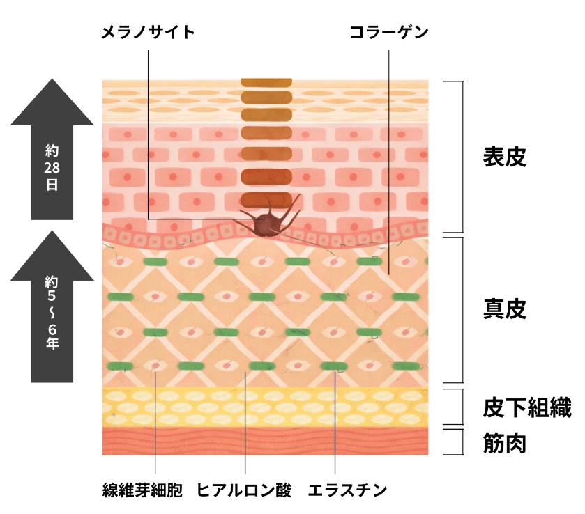 そのため「水分量が上がる」「毛穴が目立ちにくくなる」「艶が出る」といった “見た目の変化” が比較的早い段階で現れます。ただし肌の内側で「土台が整う」のはこれから。数週間〜数か月かけて少しずつ進みます。